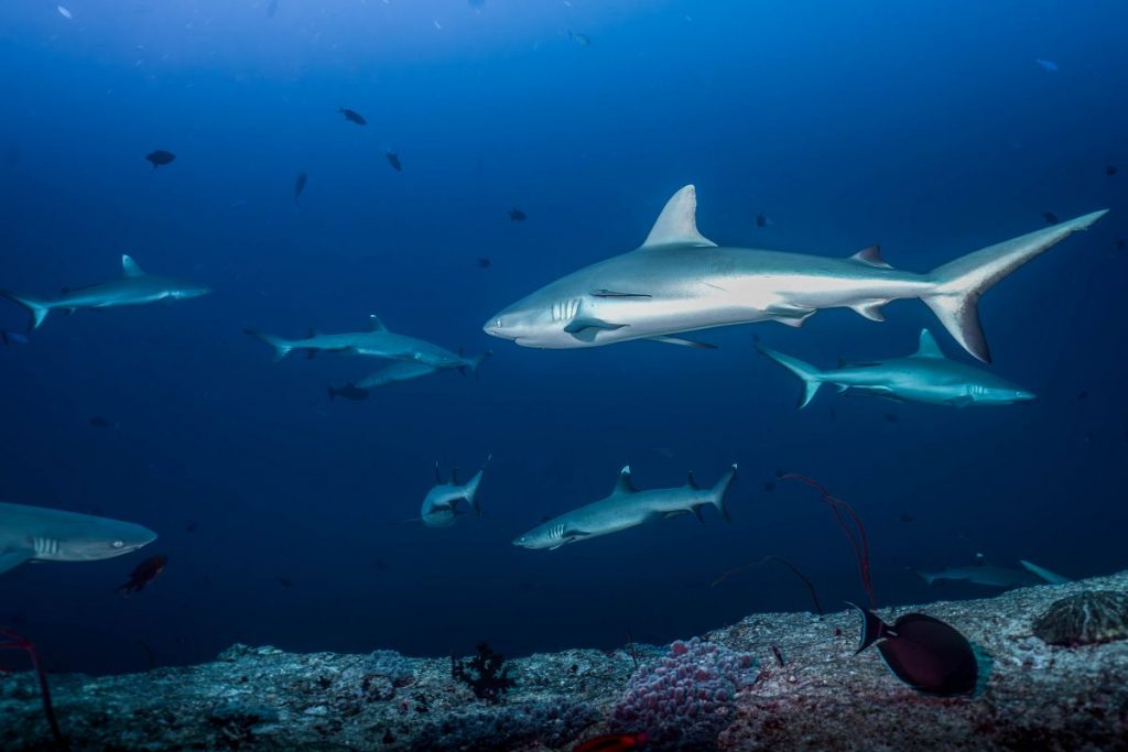 Fish Head es uno de los puntos de buceo más emblemáticos de Maldivas. Esta thila rebosante de vida alberga grandes bancos de peces, morenas y, especialmente, tiburones grises de arrecife, que patrullan la zona de forma constante.