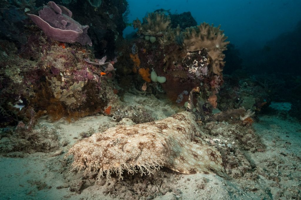 Los encuentros pelágicos son espectaculares: mantarrayas, tiburones martillo y otros depredadores oceánicos dominan estas aguas ricas en nutrientes. Raja Ampat es además uno de los pocos lugares en el mundo donde se puede observar al “walking shark” o tiburón caminante, una especie endémica que se desplaza entre las rocas durante la noche.