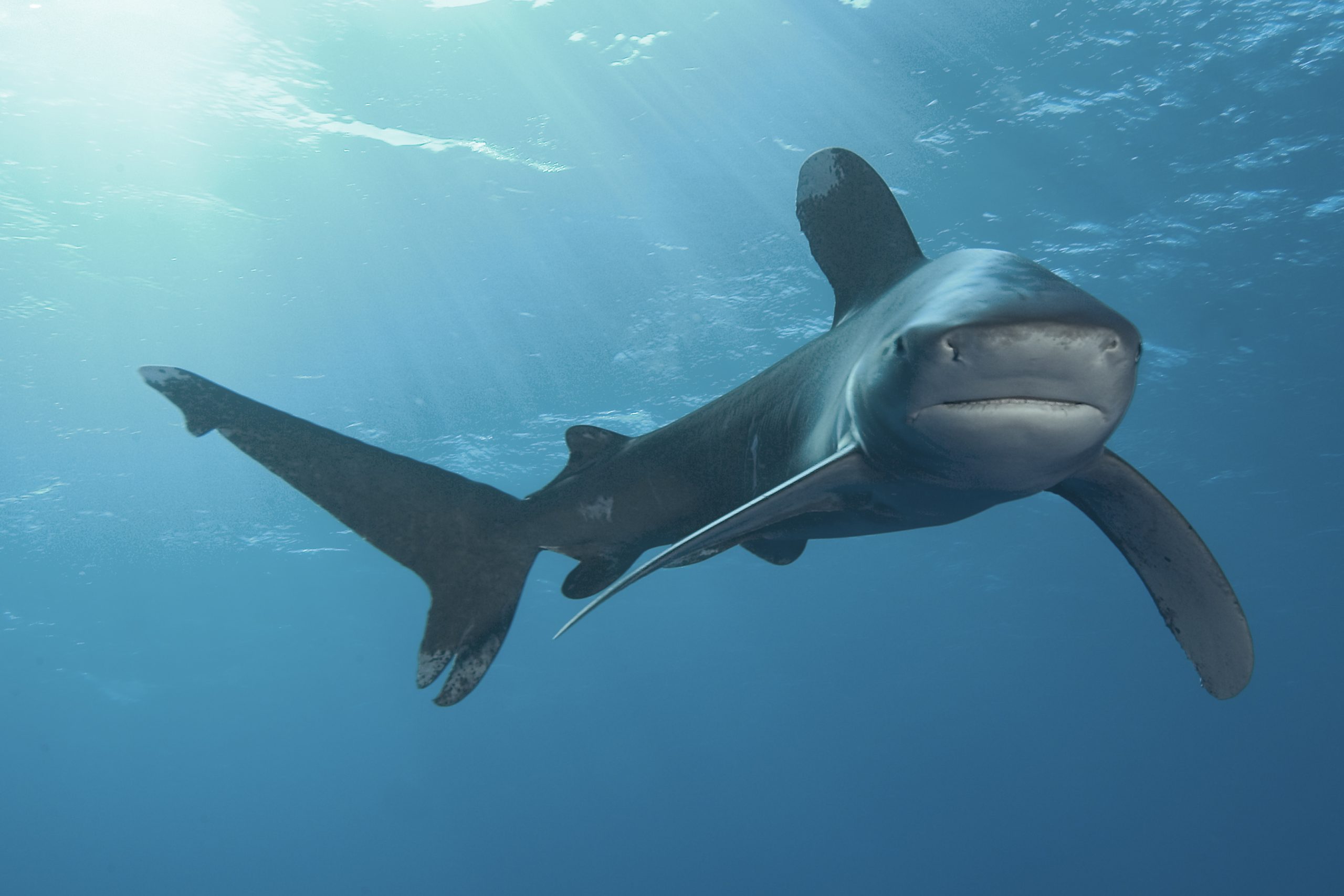 Vive la adrenalina de bucear en el Mar Rojo junto a los majestuosos tiburones longimanos, conocidos por su elegancia y curiosidad en mar abierto.